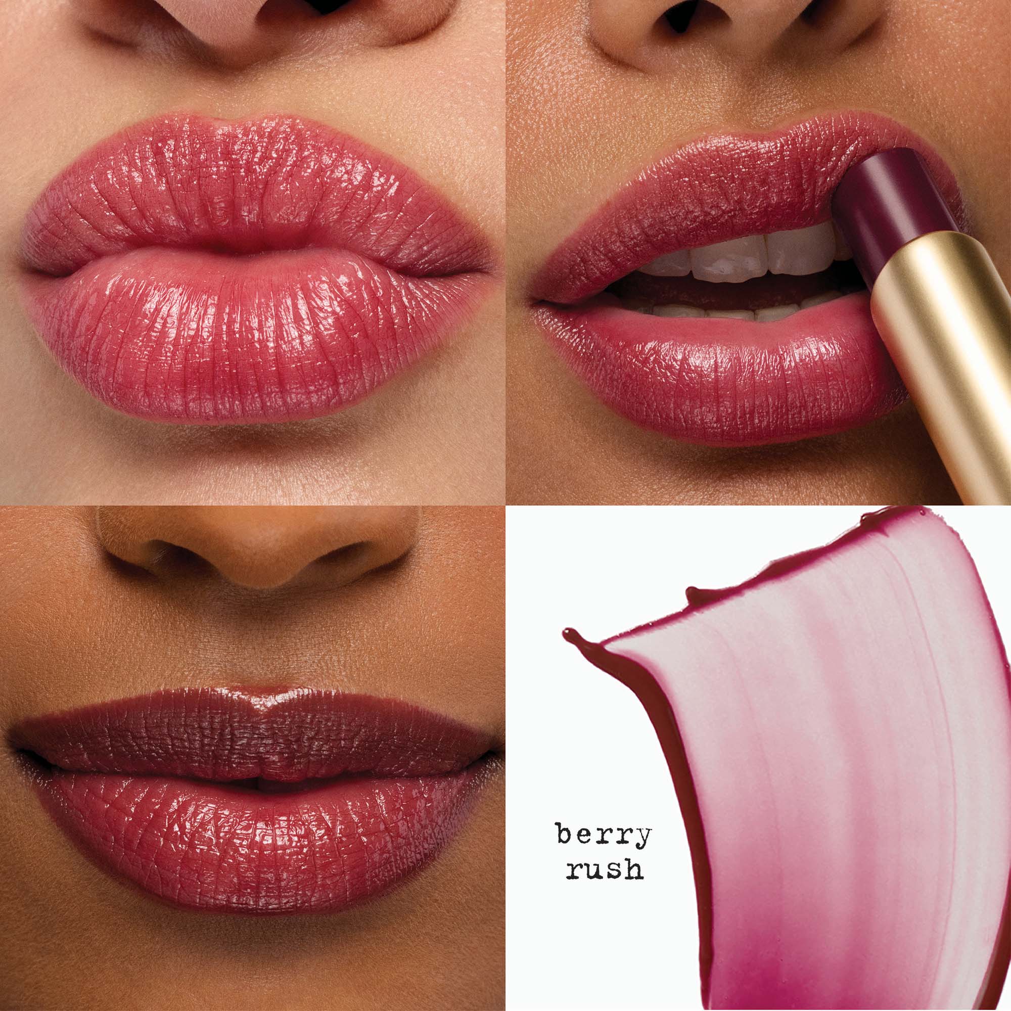 ”BERRY RUSH” INGREDIENTS: Diisostearyl Malate, Phenyl Trimethicone, VP/Hexadecene Copolymer, Bis-Diglyceryl Polyacyladipate-2, Hydrogenated Polyisobutene, Synthetic Wax, Ozokerite, Octyldodecyl Stearoyl Stearate, Pentaerythrityl Tetraisostearate, Aluminum Hydroxide, Ethylhexyl Palmitate, Ricinus Communis (Castor) Seed Oil, Alumina, Disteardimonium Hectorite, Polyhydroxystearic Acid, Flavor (Aroma), Sodium Hyaluronate, Tribehenin, Passiflora Edulis Seed Oil, Pentaerythrityl Tetra-di-t-butyl Hydroxyhydrocinnamate, Simmondsia Chinensis (Jojoba) Seed Oil, Hydrogenated Castor Oil, Sorbitan Isostearate, Vanillin, Honey Extract/Extrait de miel/Mel, Lactic Acid, Linalool, Palmitoyl Tripeptide-1, Red 7 (CI 15850), Titanium Dioxide (CI 77891), Yellow 5 Lake (CI 19140), Red 28 Lake (CI 45410), Blue 1 Lake (CI 42090).
