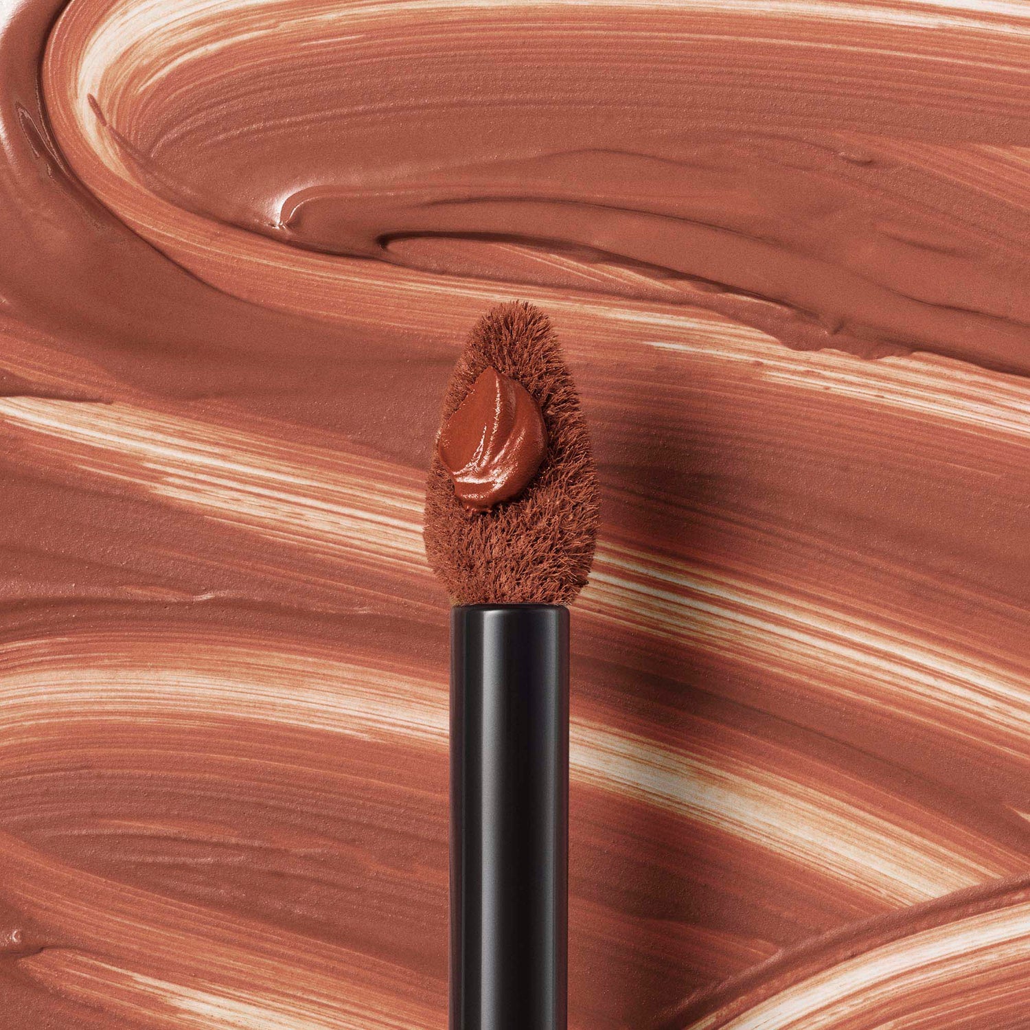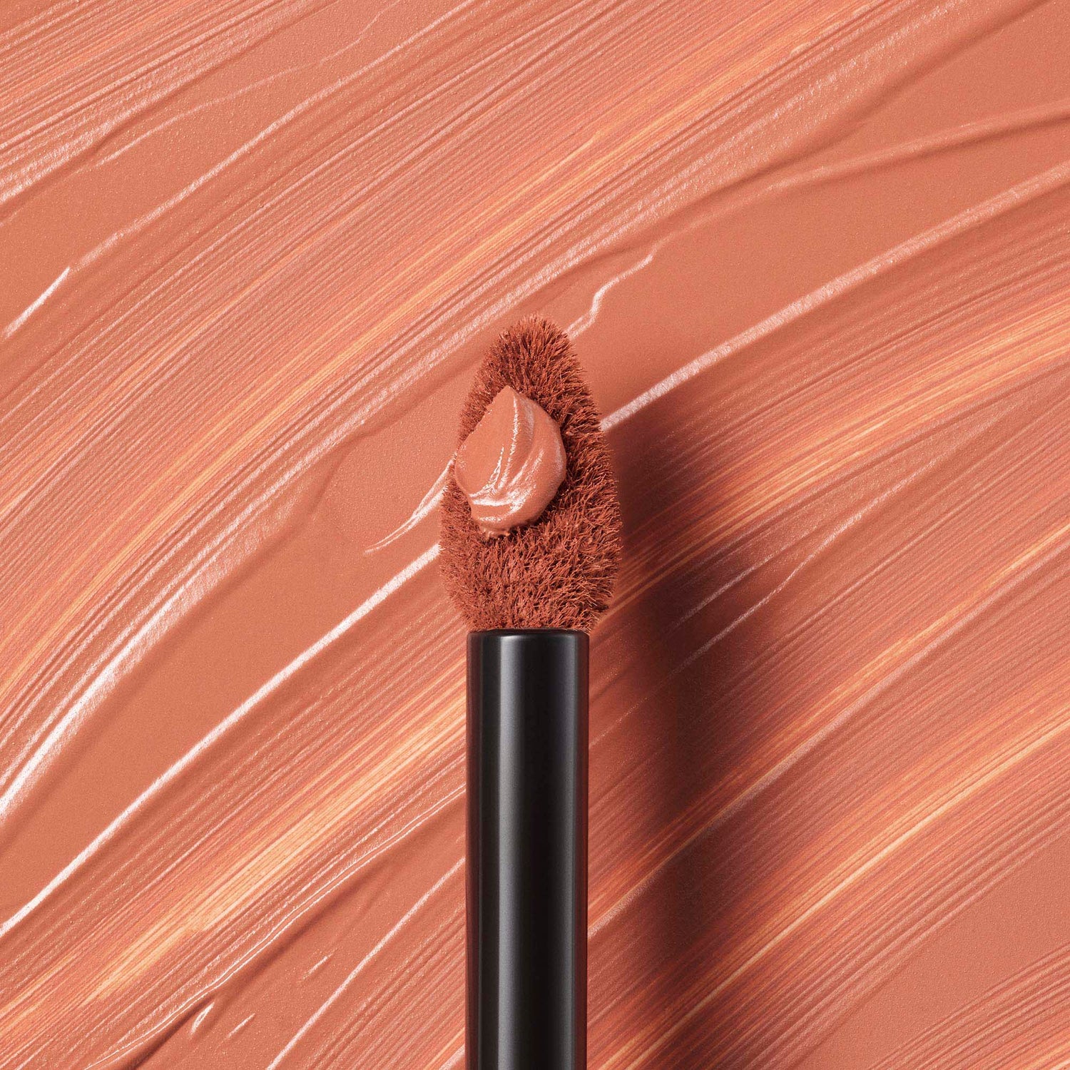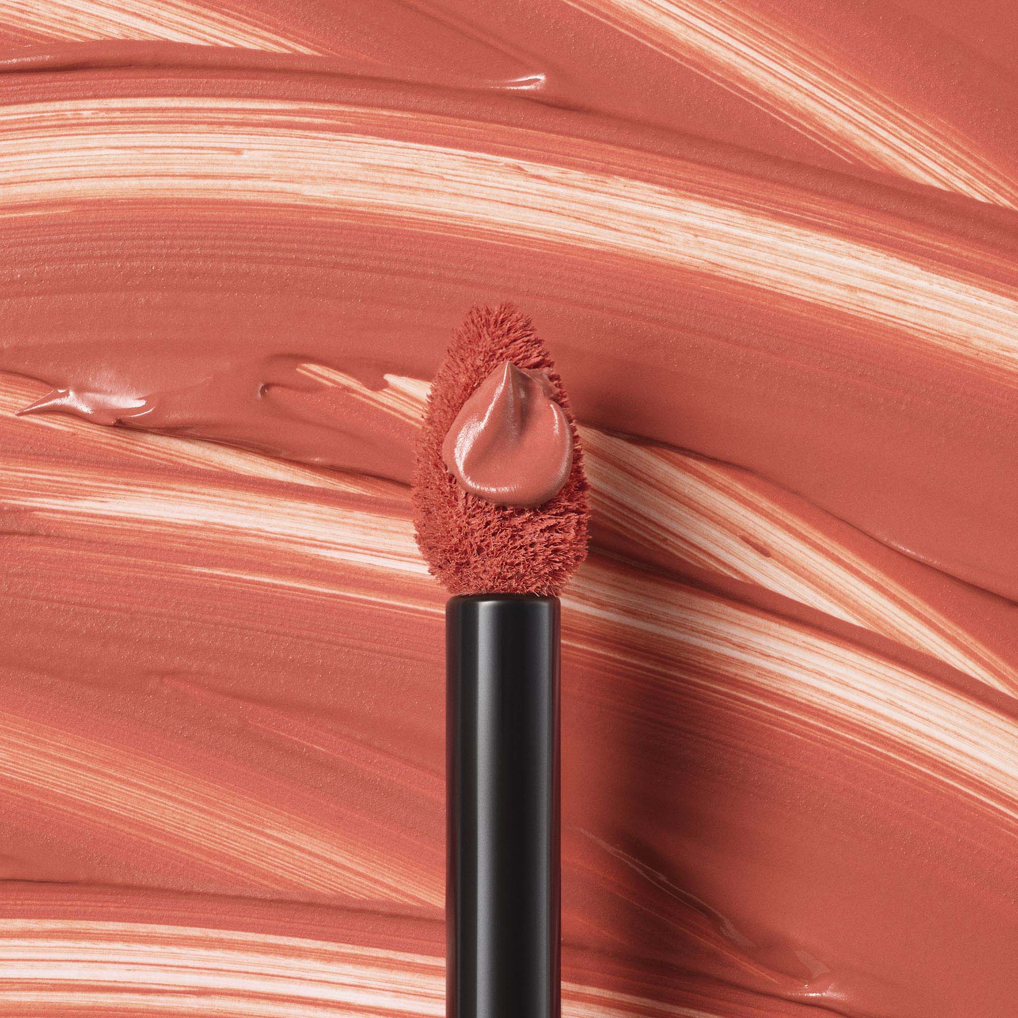 Contour lips with the applicator tip and sweep color on lips using the applicator flat edge.