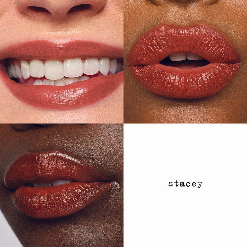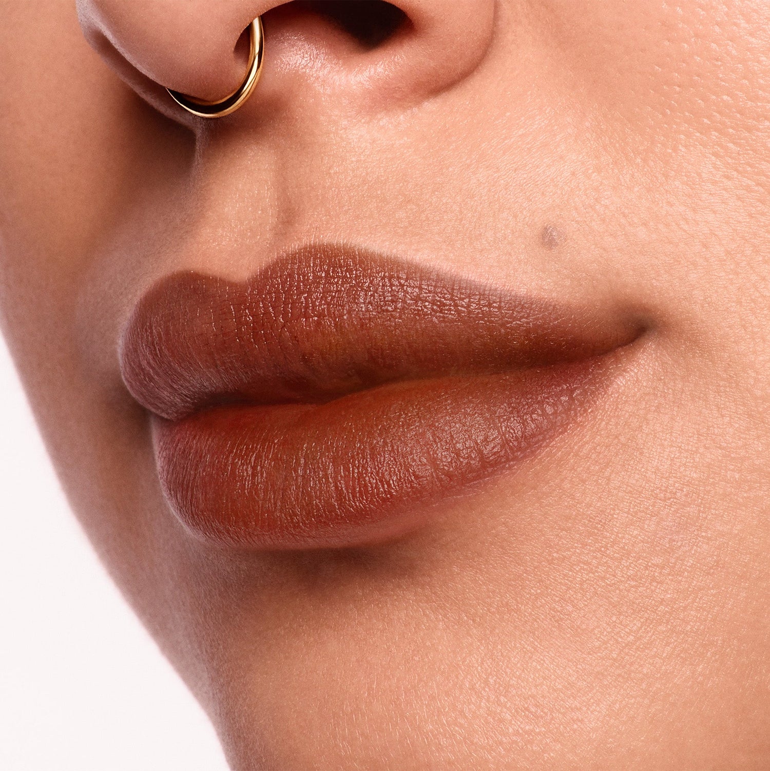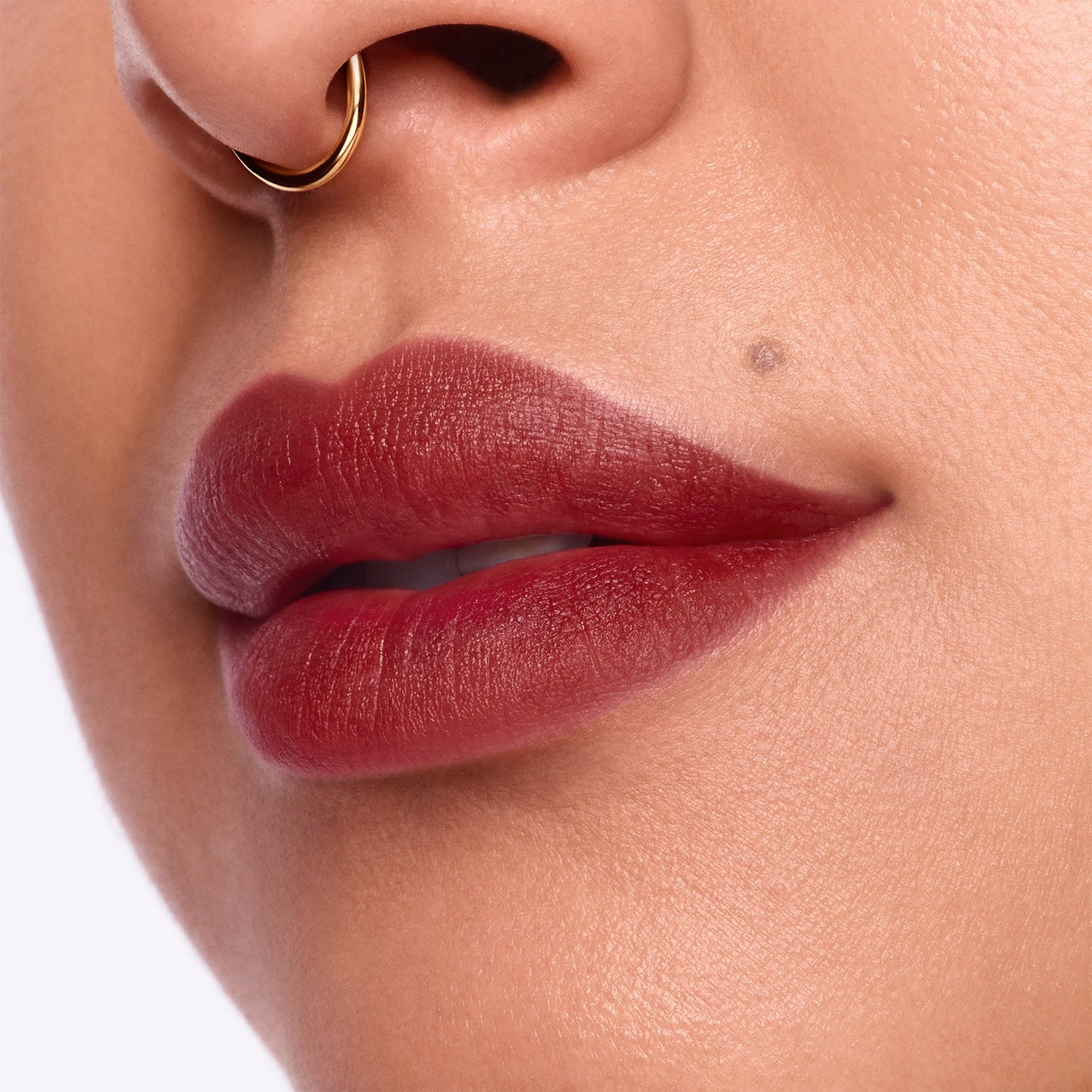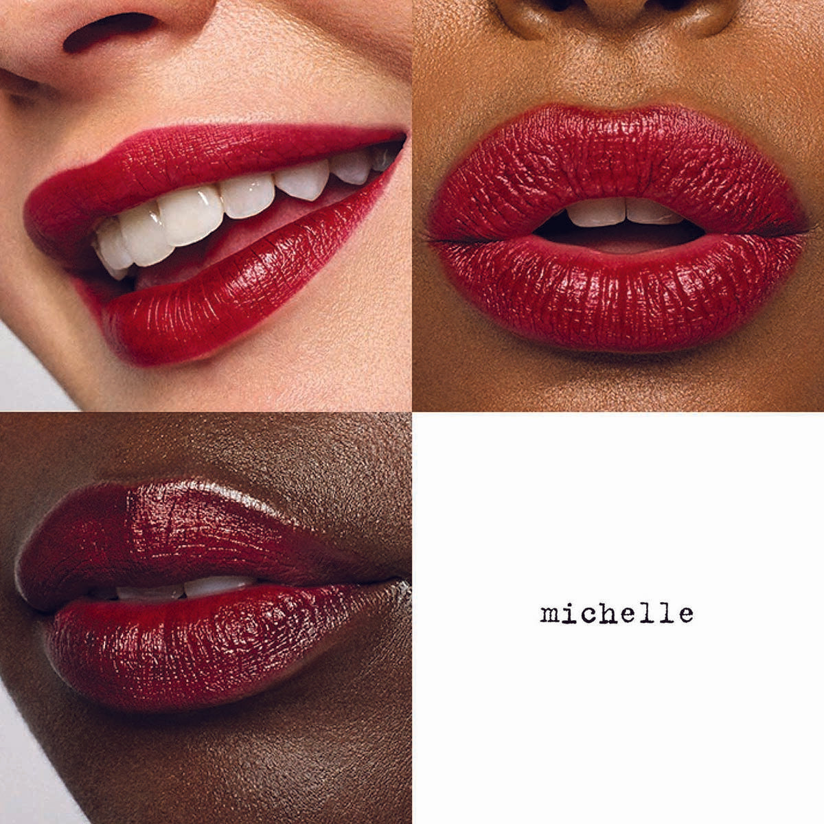 Exfoliate lips prior to use. Using both pressure and application angle, apply “on point” to line, contour, and define your lips, or “on edge” for full coverage and even color distribution. Store tip side down or horizontally for best performance.