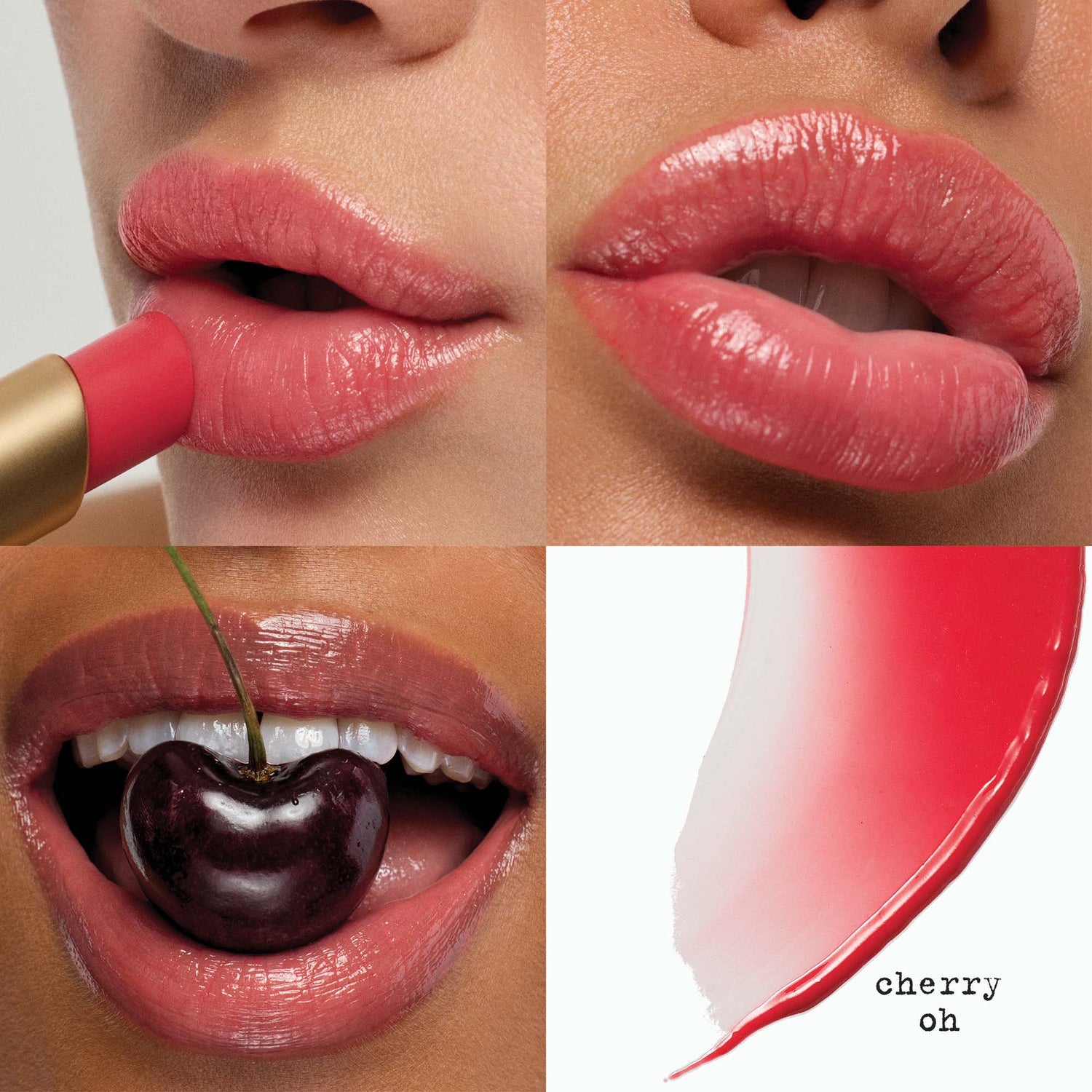 ”CHERRY OH” INGREDIENTS: Diisostearyl Malate, Phenyl Trimethicone, VP/Hexadecene Copolymer, Bis-Diglyceryl Polyacyladipate-2, Hydrogenated Polyisobutene, Synthetic Wax, Ozokerite, Octyldodecyl Stearoyl Stearate, Pentaerythrityl Tetraisostearate, Aluminum Hydroxide, Ethylhexyl Palmitate, Ricinus Communis (Castor) Seed Oil, Disteardimonium Hectorite, Polyhydroxystearic Acid, Flavor (Aroma), Sodium Hyaluronate, Tribehenin, Passiflora Edulis Seed Oil, Pentaerythrityl Tetra-di-t-butyl Hydroxyhydrocinnamate, Simmondsia Chinensis (Jojoba) Seed Oil, Hydrogenated Castor Oil, Sorbitan Isostearate, Vanillin, Honey Extract/Extrait de miel/Mel, Lactic Acid, Linalool, Palmitoyl Tripeptide-1, Titanium Dioxide (CI 77891), Yellow 5 Lake (CI 19140), Red 28 Lake (CI 45410), Red 7 (CI 15850).